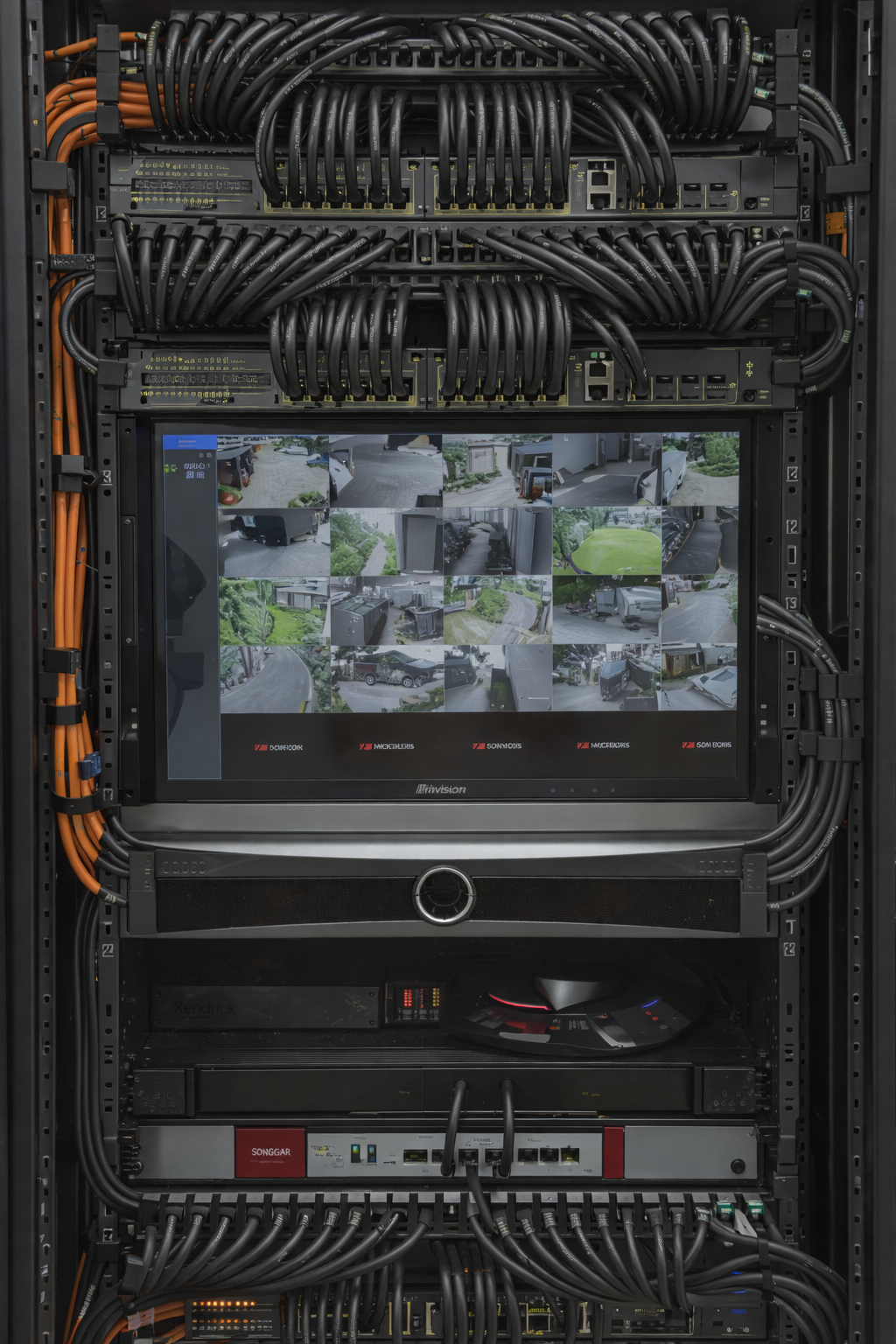 Baie informatique professionnelle avec câblage réseau structuré et switchs Ethernet installés dans un rack sécurisé